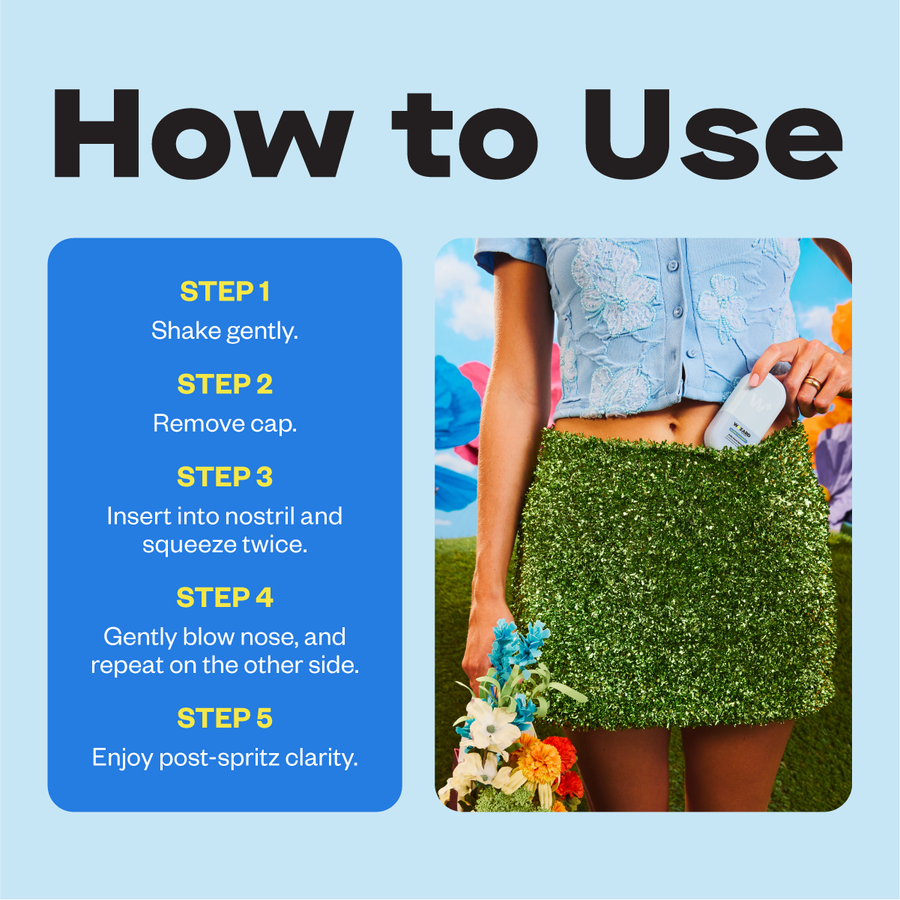 You mist your face. You mist your hands. Now, you mist your nose. This ultra-fine nasal spray delivers Activated Saline™ and our Moisture-Bond Complex to instantly hydrate and comfort delicate nasal tissue, while Environmental Stress Shield and Nasalbiome™ Technology help support daily balance against pollen, dust and dry air. It’s further supported by patented Bioavailable Quercetin from Japan, N-Acetyl Cysteine, and Licorice Root Extract—a thoughtfully selected trio to help soothe oxidative stress and calm everyday reactivity.