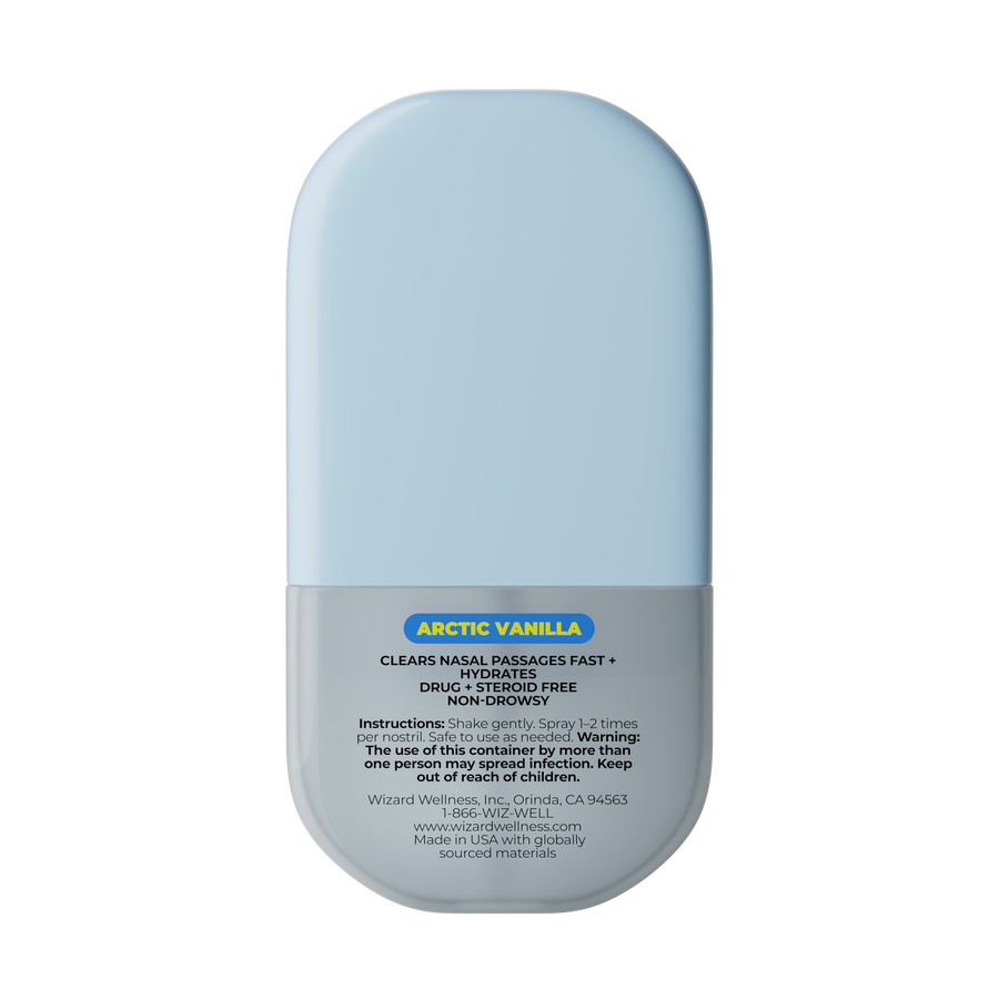 Unlike medicated sprays that rely on harsh actives, Wizard’s Daily Nasal Spray is drug-free and works with your nasal biome. It’s designed for consistent daily use without rebound congestion, whether you’re managing seasonal allergies, sinus flare-ups, dry air or long travel days.
